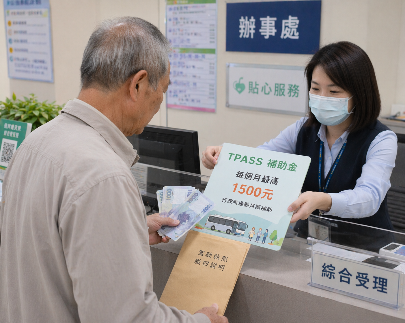 而年滿70歲繳回駕照、簽署個資授權使用同意書、加入TPASS常客,將依實際搭乘電子票證支出金額補助50%回饋金,每月回饋金上限1500元,補助期間2年,最高可領3萬6000元