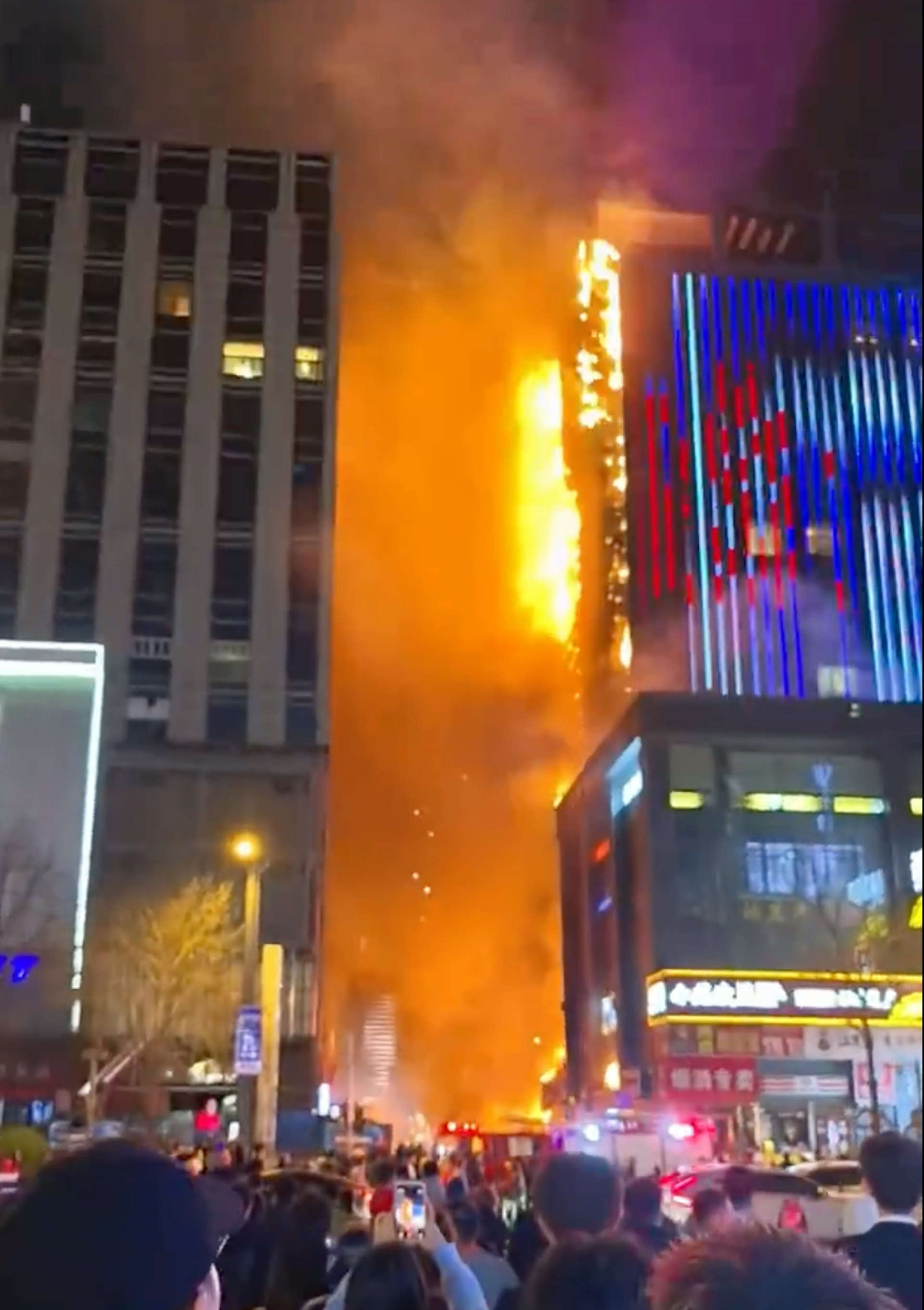 當晚警笛聲響徹夜空,這棟位於太原親賢商圈的建築瞬間被火舌吞沒,現場濃煙滾滾、火光映紅天際。在場民眾驚恐表示,火勢蔓延速度快得嚇人,著火的雜物像火球般接連從高處墜落,場面相當混亂。據了解,起火點疑似位於底層餐廳,隨後迅速引燃外牆的保溫建材,火苗沿著牆面快速向上攀爬,整棟樓瞬間陷入火海。