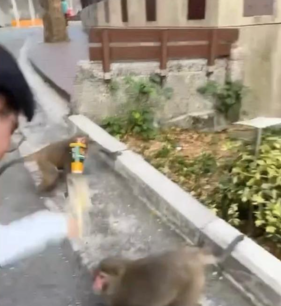 一段在高雄壽山動物園拍攝的影片近日在網路上掀起熱烈討論。畫面中,兩隻台灣獼猴同時對遊客展開「突襲」,其中一名女性遊客手中的飲料瞬間成為爭奪目標,液體全數灑落地面。就在其中一隻獼猴成功搶走飲料杯、另一隻準備繼續行動時,同行的男性遊客再也按捺不住,直接彎腰朝獼猴臉部揮了一巴掌,還飆出五字經髒話,這起衝突事件引發各界關注。