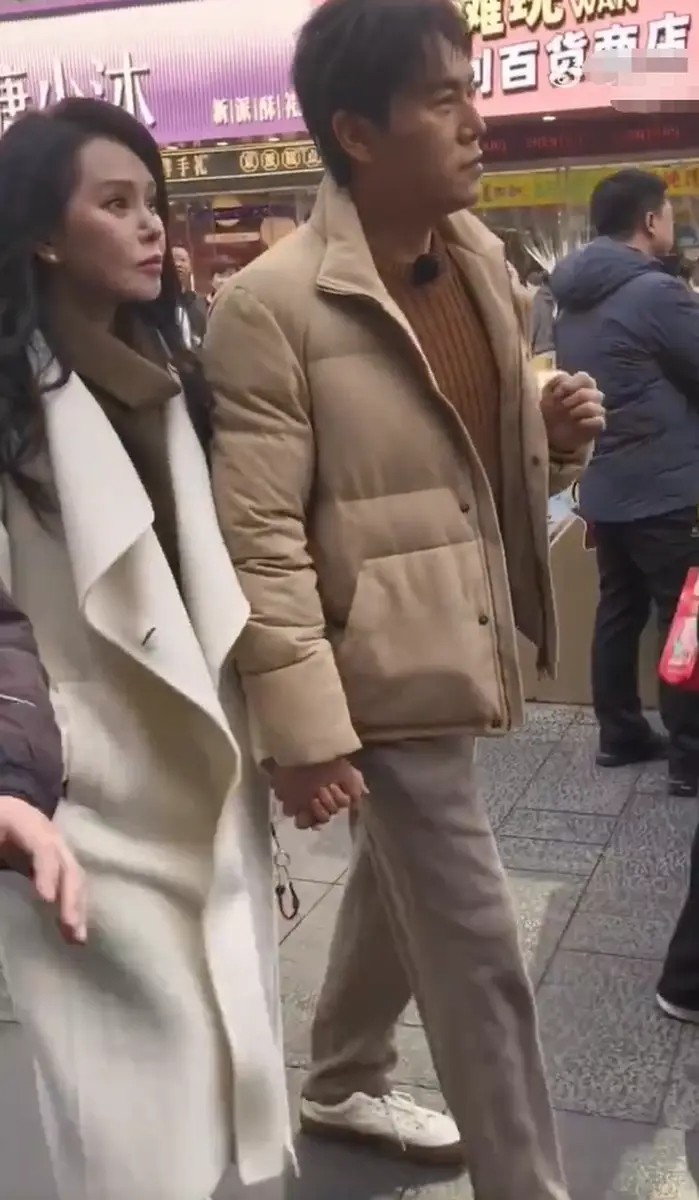 2月21日,這對夫妻被偶遇在瀋陽中街和奧體中心冰雪世界。鏡頭裡,兩人全程十指緊扣,互動親密。伊能靜一身白色毛呢大衣配寬褲,氣質在線;秦昊則穿著棕色羽絨服,身形清瘦,兩人同框完全看不出9歲的年齡差。