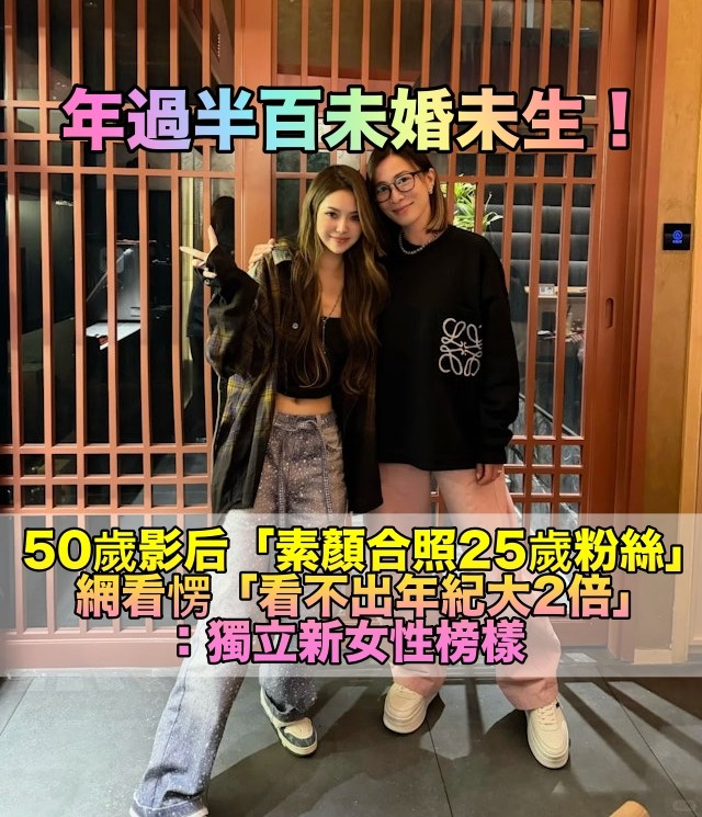 年過半百未婚未生!50歲影后「素顏合照25歲粉絲」 網愣「看不出年紀大2倍」:獨立新女性代表❤️