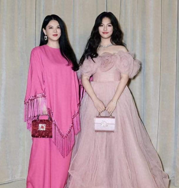 前陣子帶著女兒王詩齡參加巴黎時裝周時,母女倆的裝扮是這樣的。
