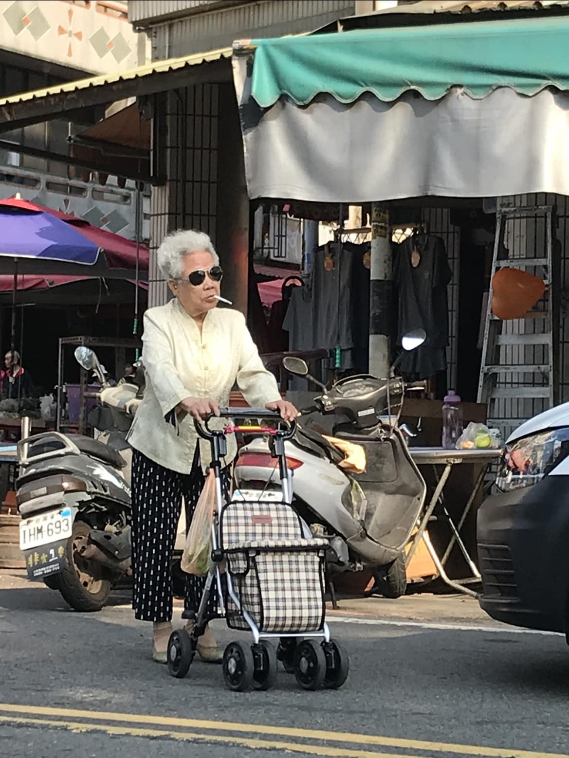 在許多人心中,阿嬤總是一副和藹、溫暖形象,深怕孫子吃不飽、穿不暖,但這樣的阿嬤你有看過嗎?一名網友日前在臉書社團「路上觀察學院」發文,上傳一張叼著煙、戴上墨鏡,手上還推著菜籃車的白髮阿嬤,霸氣形象不言而喻。照片一上傳,馬上吸引上萬名網友朝聖,直呼「真的太潮啦~」。