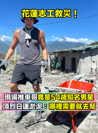 花蓮湧入志工救災!驚見一名推車哥「竟是54歲知名男星」 頂烈日運淤泥:「哪裡需要就去幫」