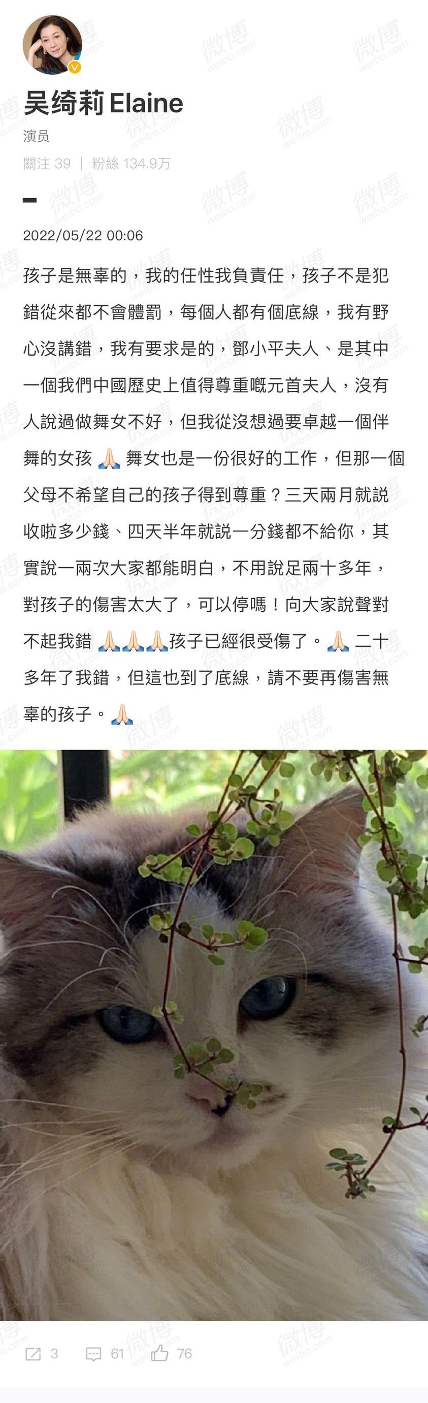圖片來源:吳綺莉微博、網路