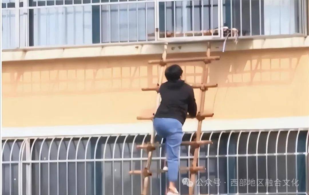 徐女士居住在王老伯樓上,每天只能藉助梯子進出家門。她終於無法忍受這般屈辱,遂向媒體傾訴了自己的苦楚。