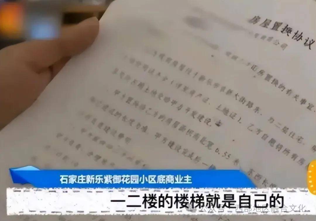面對憤怒住戶,王大爺理直氣壯地展示那份置換協議,左一個條款,右一個條件,堅稱樓梯歸自己所有。即使面對反覆強調樓梯屬於公共區域的解釋,他卻固執己見,拒不認錯。