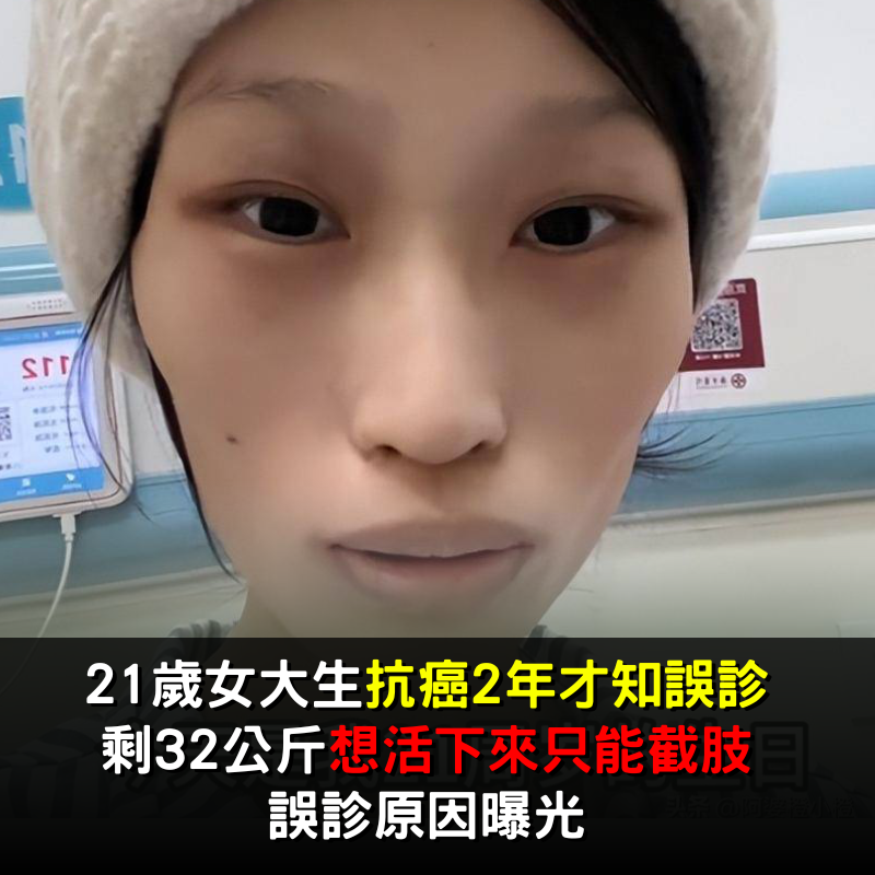 21歲大學生抗癌兩年「才被告知誤診」!瘦到剩32kg「想活只能截肢」