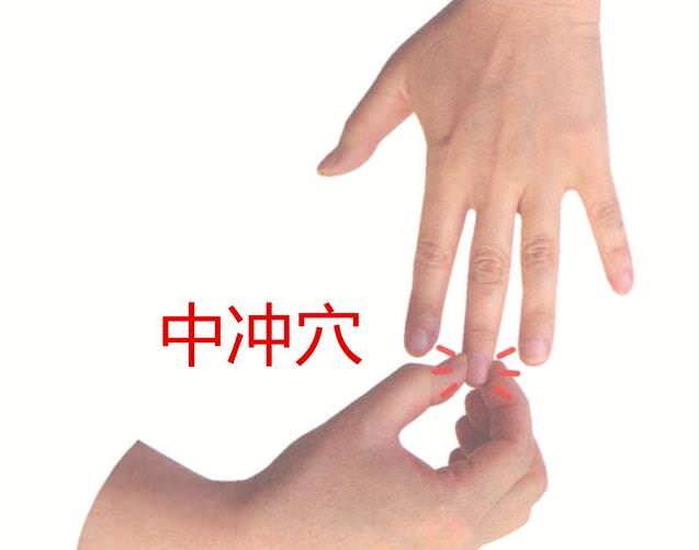 按壓方法:用另一隻手的拇指和食指夾住中指指甲的兩側按壓。
