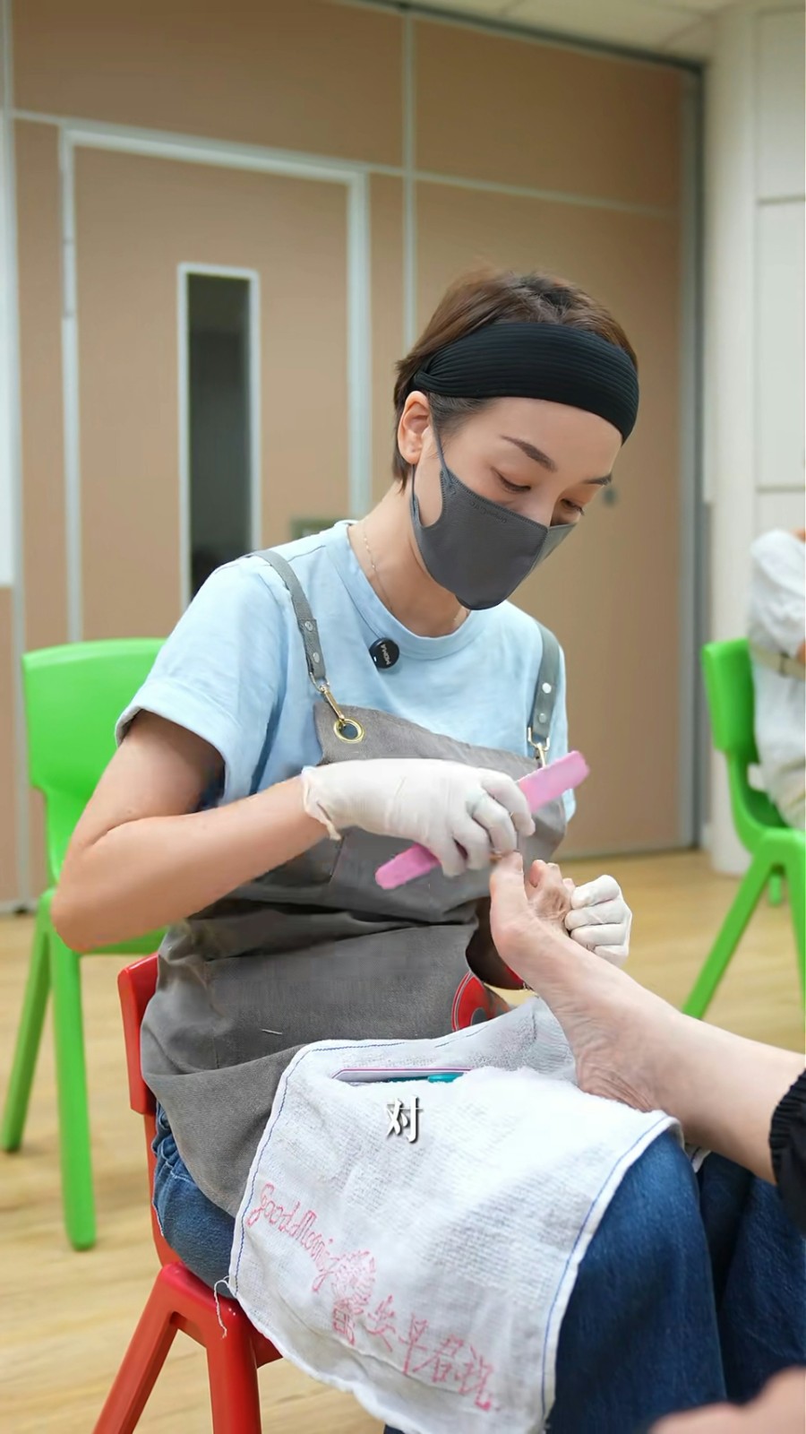 影片中,她戴上口罩,細心為老人們修指甲,神情專注、有愛。她在片中透露,有一個老人因為行動困難,再加上先前疫情肆虐,長達4年都沒有剪腳指甲,「那麼長,然後碰他一下,他都痛得不得了」。她坦言,這是她有生以來,第一次看到那麼長的指甲,更遑論這段期間的痛苦難堪。