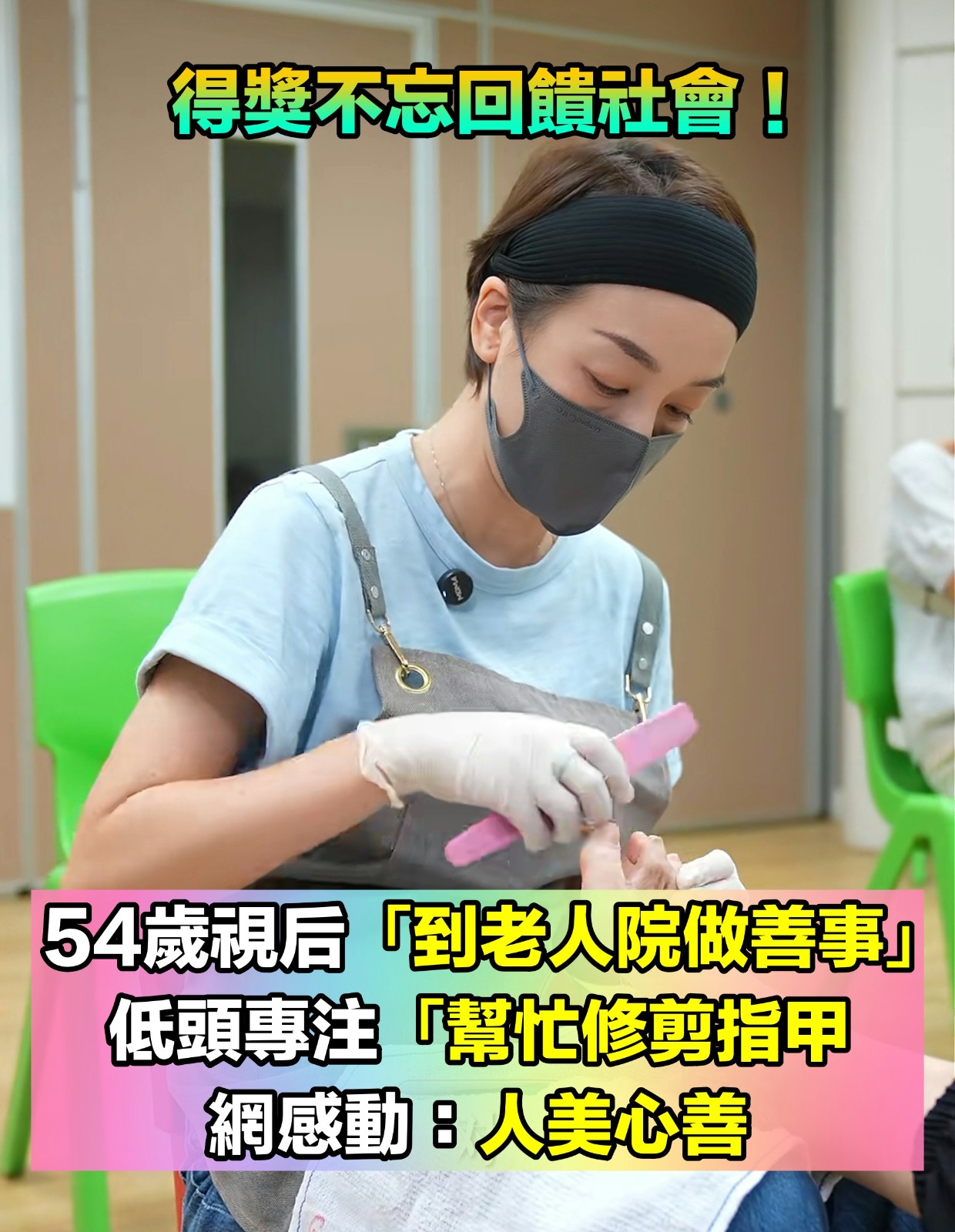 超親民沒架子!54歲視后被捕獲「到老人院做善事」 低頭專注「為老人修剪指甲」網感動:人美心善
