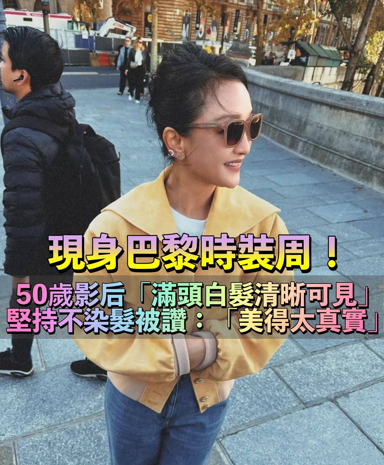 巴黎街頭的晨光裡,51歲的周迅身著米黃色CHANEL夾克與牛仔褲漫步。