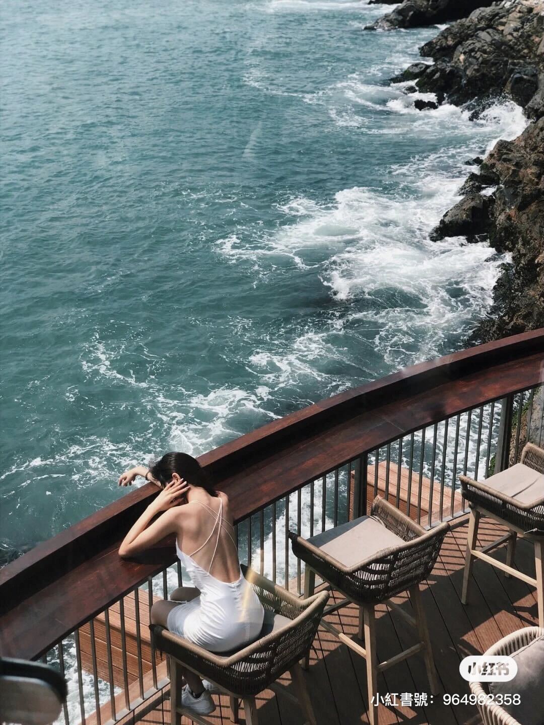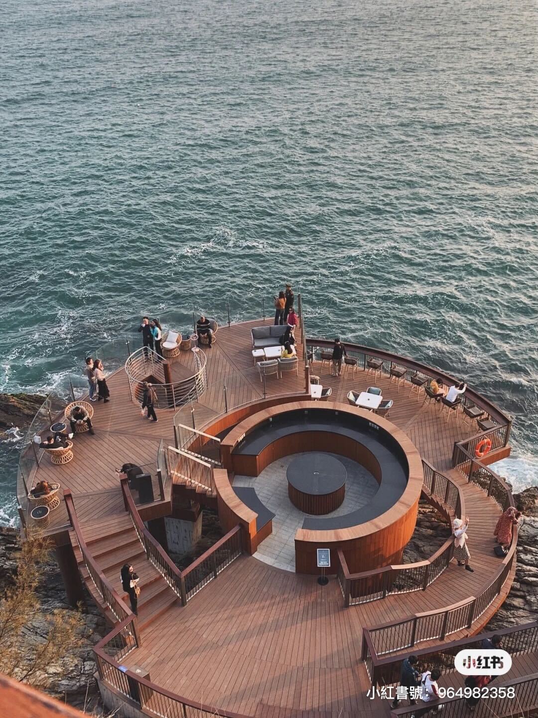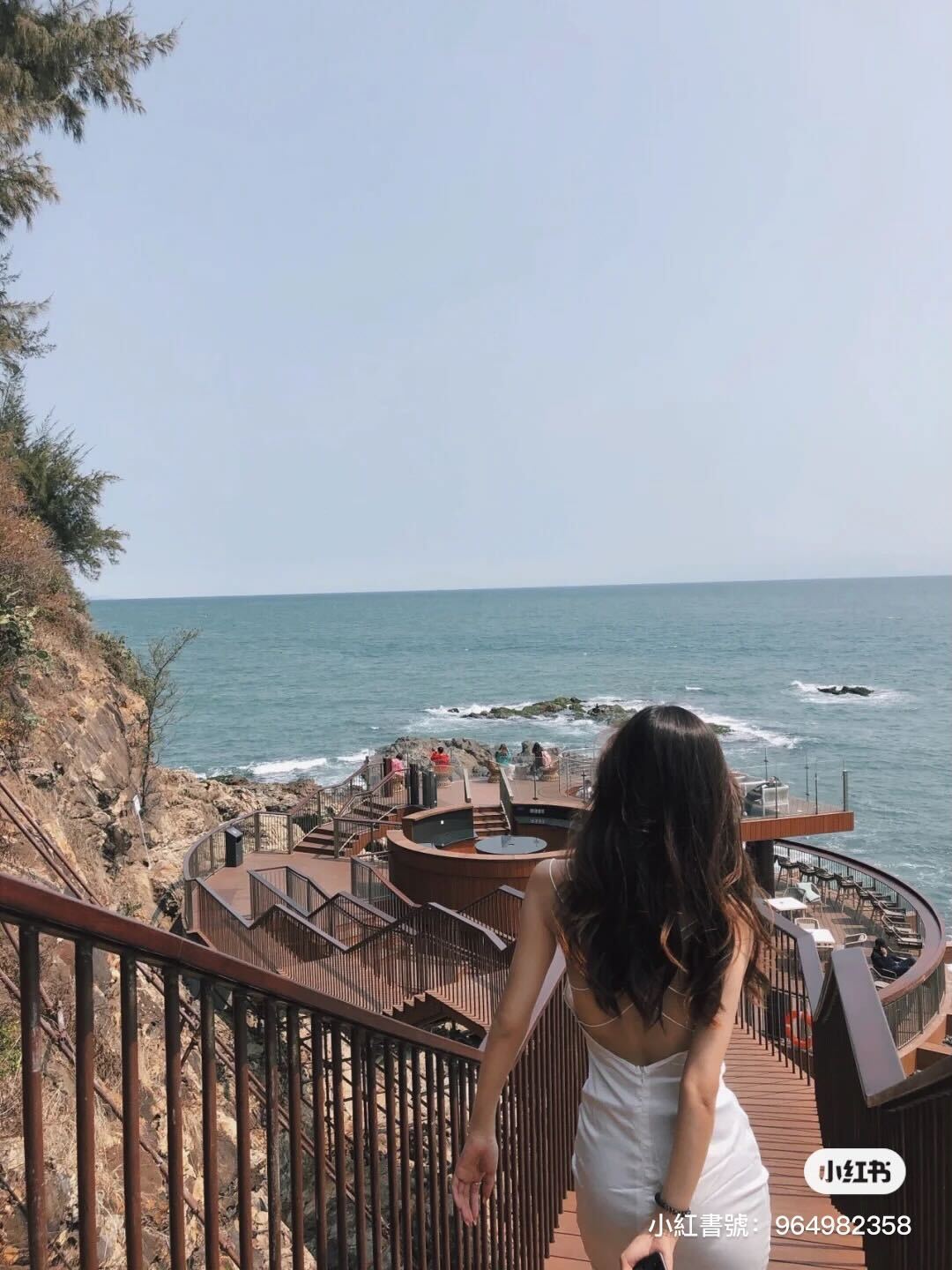 許多人都喜歡在階梯上往海的方向拍過去,像是棧道一樣建在海邊、懸崖旁邊,怎麼拍都有種壯觀感,天氣好時能看盡一切碧海藍天,傍晚又能看夕陽,人生的儀式感可能就是如此。