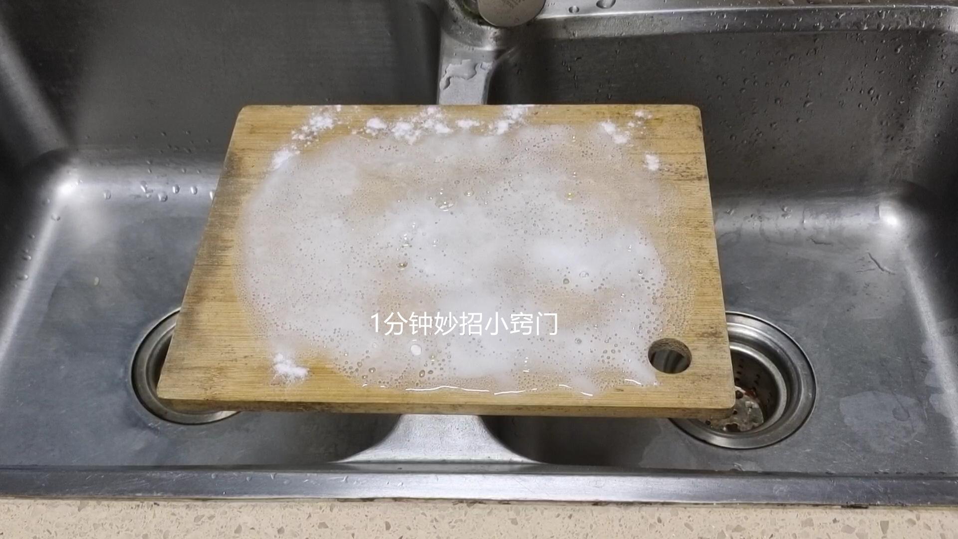 第二個作用,家裡的菜板,我們也是需要經常清潔的,因為菜板每天都會用來切菜,切一些魚肉,如果長期不清潔,那麼菜板的縫隙裡面就很容易藏污納垢,時間久了之後,就容易滋生一些細菌,我們同樣可以利用白醋來幫忙清潔。