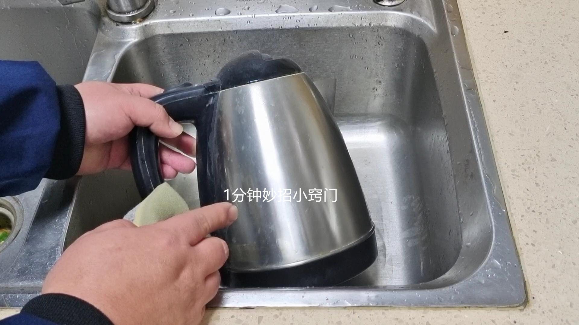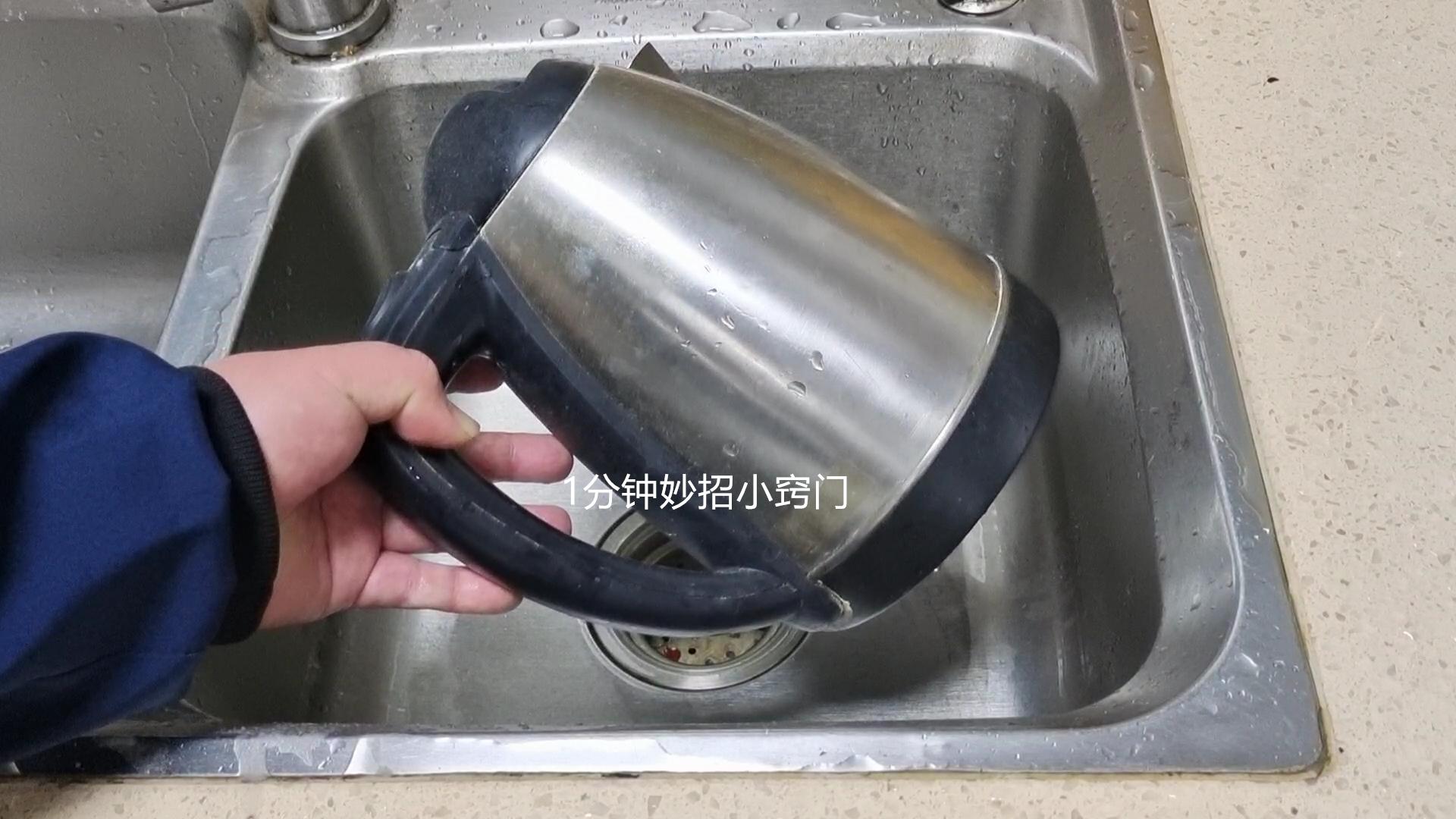 第三個作用,家裡的電熱水壺,我們每天都會使用,用來燒水,幾分鐘時間,就可以把水燒開,也是比較方便的,但是,水壺用久了之後,表面容易附著上一些髒東西,污漬,我們也可以利用白醋來清潔。