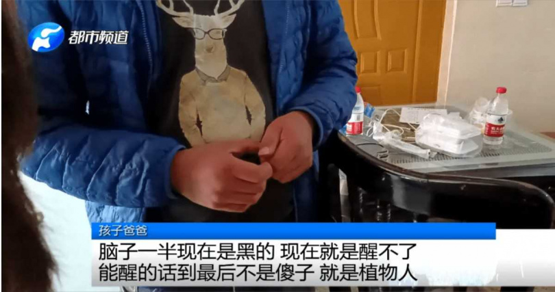 雖然發生憾事之後,作為父親的王男也在第一時間將孩子緊急送醫,但沒想到最後診斷出腦出血,腦部嚴重受損陷入嚴重昏迷,因此事後受訪時也非常後悔地慚愧說道:「醫生說是腦出血,腦子一半現在是黑的,現在醒不了,要是能醒的話,不是傻子就是植物人」,並哽咽地道自己一輩子都無法原諒自己了。
