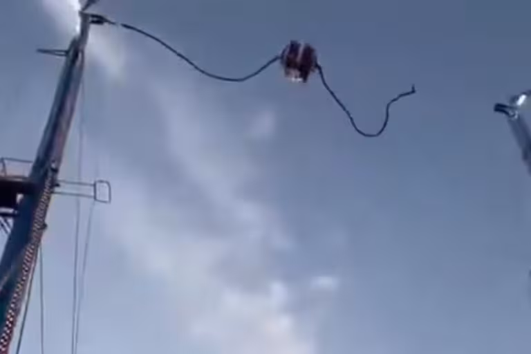 這起意外發生在當地時間4月24日晚間8點20分左右,地點位於嘉年華園區內人潮洶湧的遊樂設施區「地獄街」。一座名為「Steel Max」的飛天彈弓遊樂設施,在將座艙彈射至高空、來回彈跳的過程中,其中一條主要的鋼製纜繩竟突然斷裂。座艙瞬間失去平衡,在半空中劇烈甩動,接著直接猛撞上支撐結構的金屬柱,場面相當駭人。