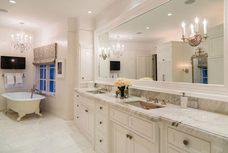 寬敞的廁所依然美到驚豔!影后在這裡泡澡再回房間休息,每天生活想必是優雅又快活~
