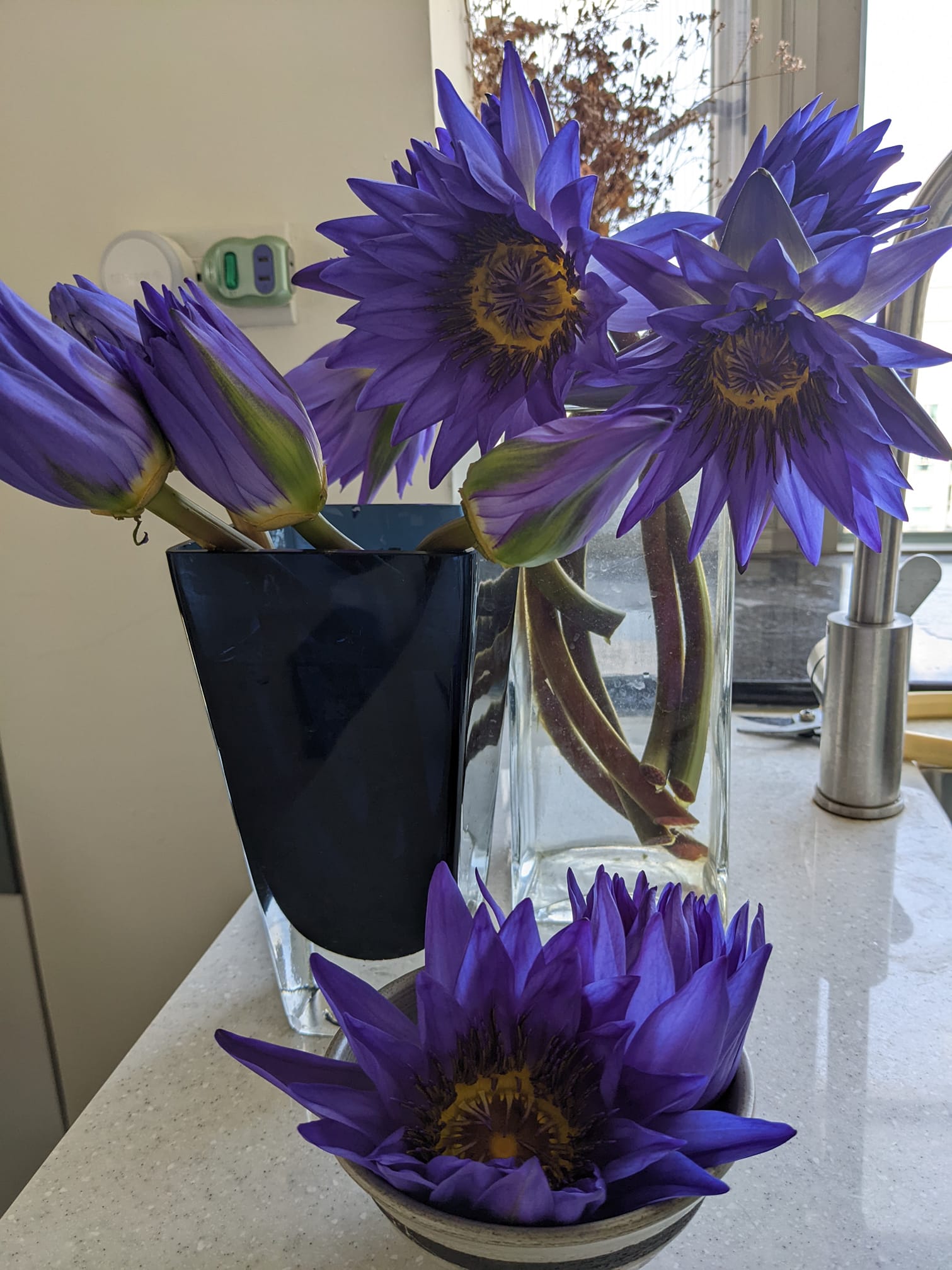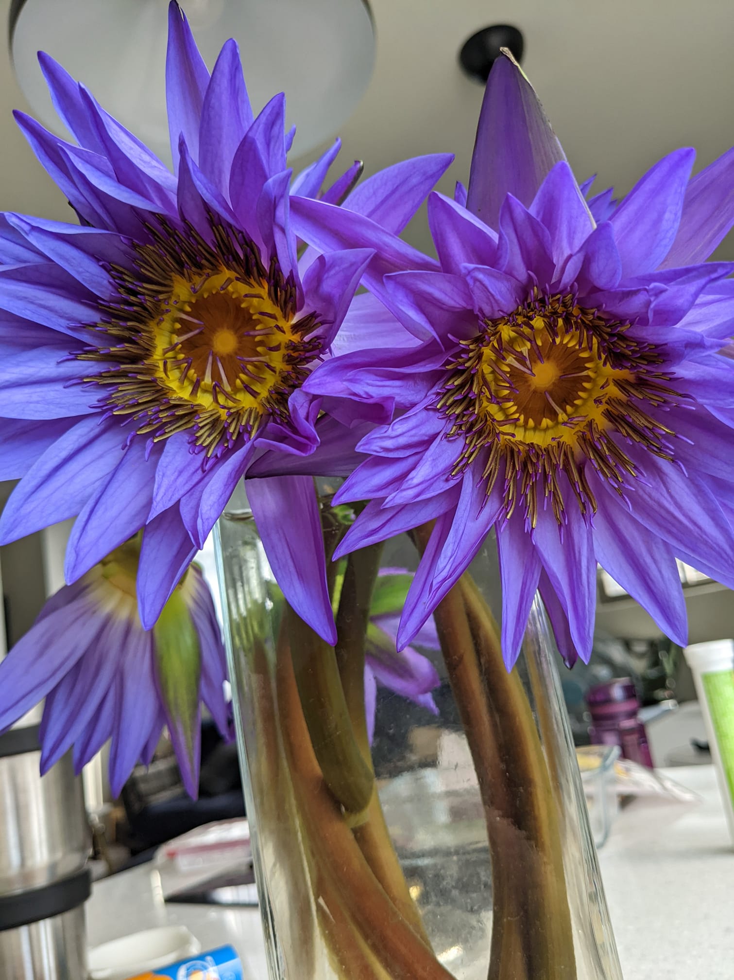 對此有開花店的網友熱心解釋,指出要睡蓮開花必須注意幾點事項:花莖太長了不易吸水,所以要特別剪短,且花瓶的水至少要過一半以上;也有較快速的急救方法,先剪短花莖後把整朵花泡在大水桶裡即可。