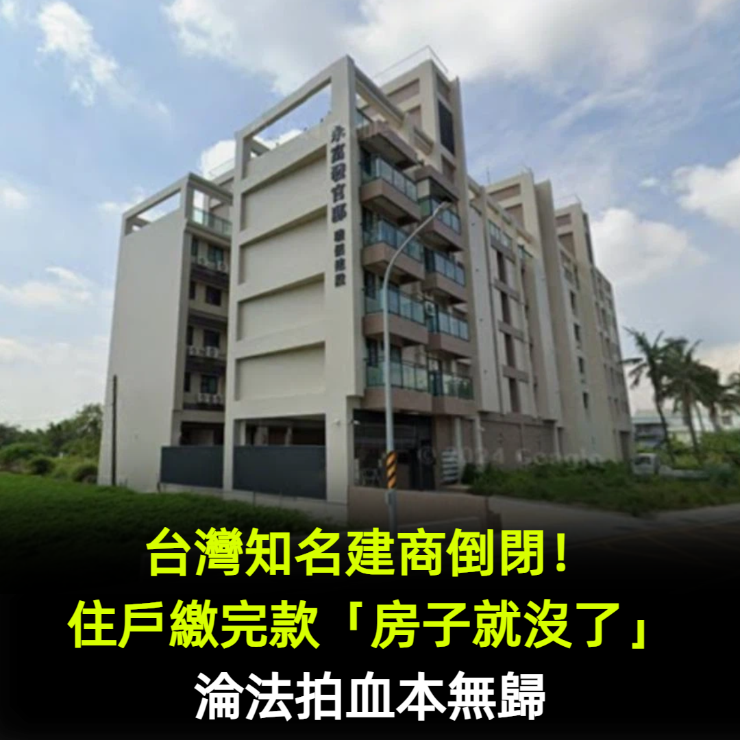 台灣知名建商倒閉!住戶繳完款「房子就沒了」淪法拍血本無歸