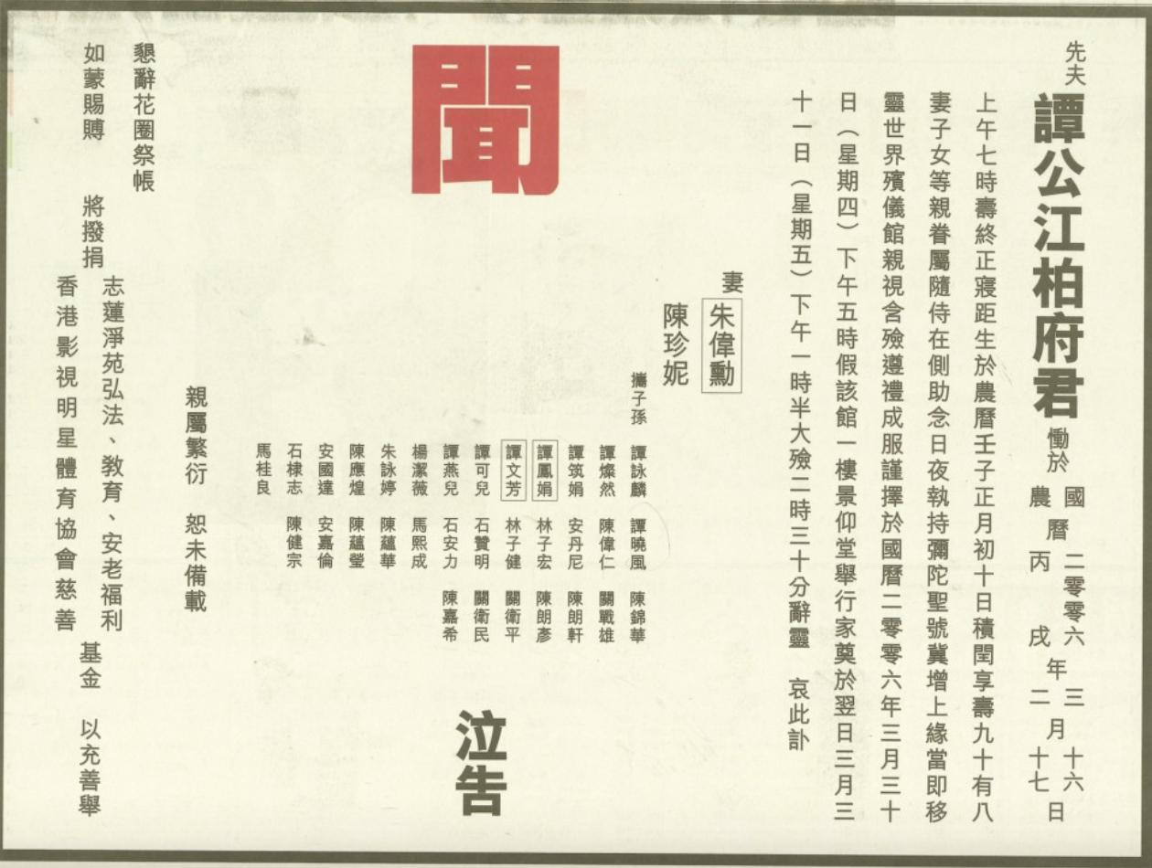 譚詠麟在90年代就已經與朱穎婷交往,由於身份特殊的關係,朱穎婷一直沒有被曝光,包括她與譚詠麟所生的兒子譚曉風更不為人所知道。直到2006年譚詠麟的父親離世,其家人發布了訃聞,譚詠麟與朱穎婷的事情才被曝光。朱穎婷雖然不是明媒正娶,但是在譚詠麟父親的訃聞上也看到了她的名字,與譚詠麟的太太楊潔薇並列,可見譚詠麟已經將她視為妻子一般,這些年還一直相伴左右。雖然當年事情曝光後,也引發了爭議,不過隨著時間的流逝,整件事也逐漸淡化,譚詠麟也會在社群上曬出兒子的照片,2019年譚曉風在牛津大學碩士畢業,譚詠麟還罕見公開了兒子畢業照。