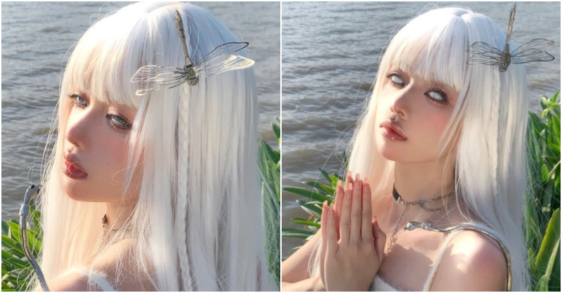 小紅書@imJoe_ 在網路上擁有20萬粉絲追蹤,經常在網路上分享自己的美妝和穿搭照,一頭金髮的她不僅皮膚超級白皙,加上戴上口罩拍照,更加凸顯她那宛如外國人般的深邃電眼,根本芭比本尊再現~