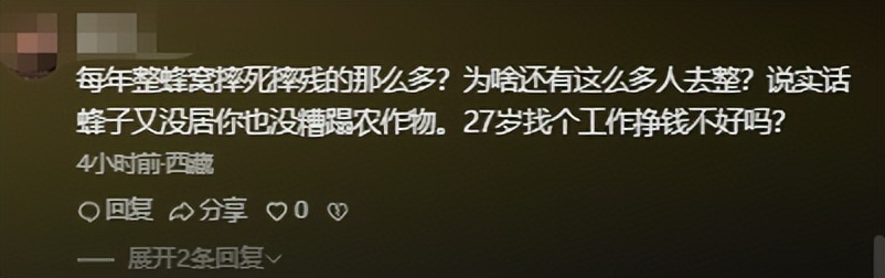 有不少不明真相的網友表示,萬物皆有靈,每年整蜂窩摔死摔殘的那麼多?為啥還有這麼多人去整?