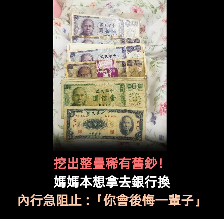 媽媽挖出私房錢!驚見「一整疊超稀有舊鈔」想拿去銀行換 行家一看大驚「千萬別拿去換」:能賺20倍