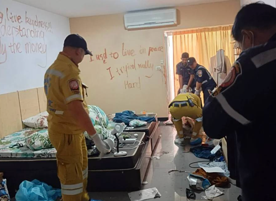 據了解,這對男女都是曼谷大學人文與觀光管理學院的一年級學生,兩人交往中。朋友透露,男方最近一直想要修復出現問題的戀情。一名住在隔壁的中國留學生也證實,大約兩星期前曾聽見房內傳來激烈的電話爭執聲響。警方調閱監視畫面確認,案發時段內除了這對情侶之外,沒有其他人出入過該房間,初步研判應該是男方先殺害女友,接著自殘後從高樓一躍而下。