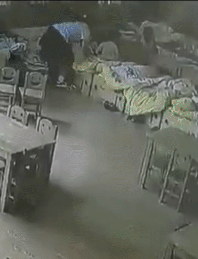 四川宜賓一所幼兒園內,地震發生時孩子們正在午睡,兩名老師瞬間起身,把還在床上的孩子抱起,並迅速組織30餘名小朋友撤離。