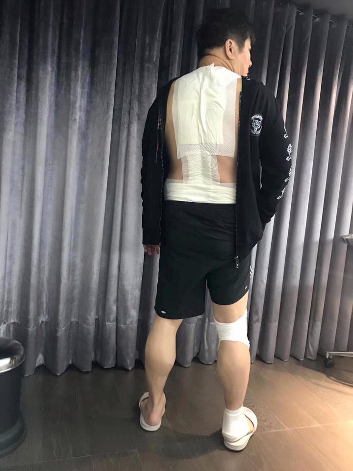 根據《ETtoday星光雲》報導,胡瓜當時在就醫後發布一張照片,可以看到他滿背貼滿藥膏,就連右腳腳踝和膝蓋也都包紮起來,讓人看了相當心疼。不過當晚還要到桃園主持跨年晚會的胡瓜,依舊敬業地向大家喊話:「謝謝大家的關心。昨天看完醫師,休息一夜蓄勢待發,全力以赴!大家晚上跨年記得多加件衣服喔!桃園見!」。
