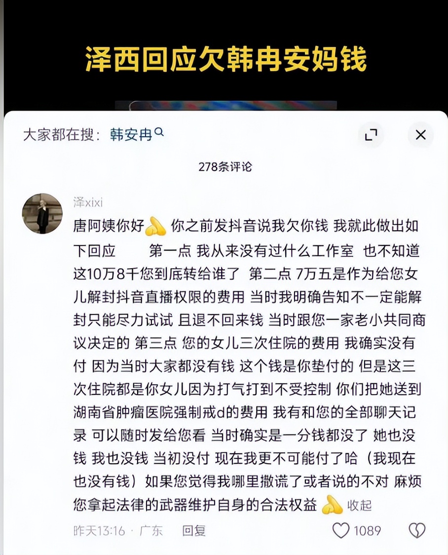 韓安冉曾公開「怒罵」親媽,指控母親偏心妹妹,甚至把父親留給自己的房子佔為己有。