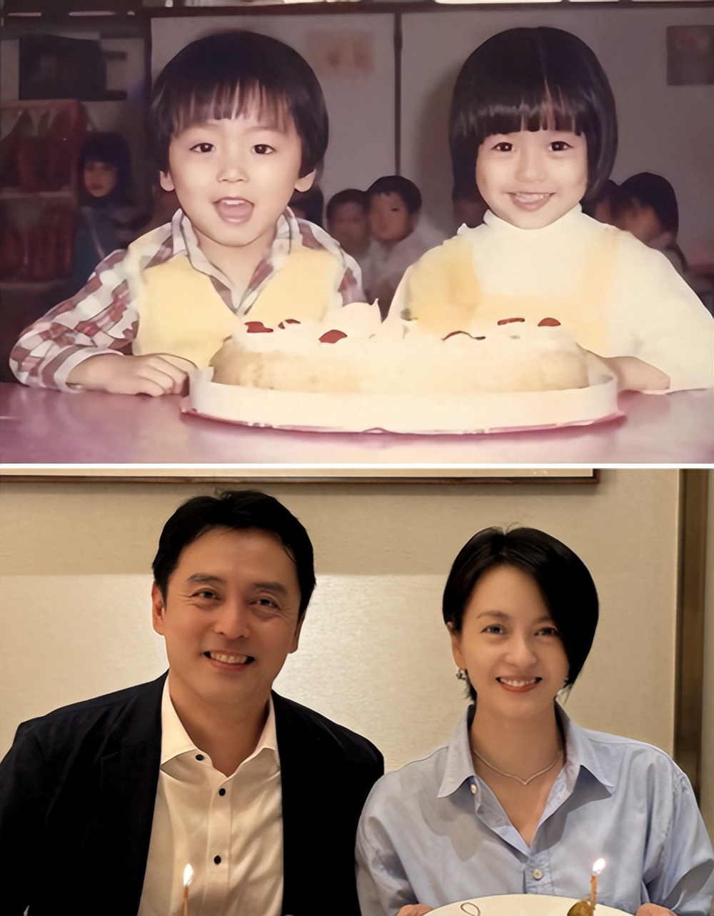 童年舊照裡,兩人穿著同款小衣服,臉蛋圓嘟嘟的。