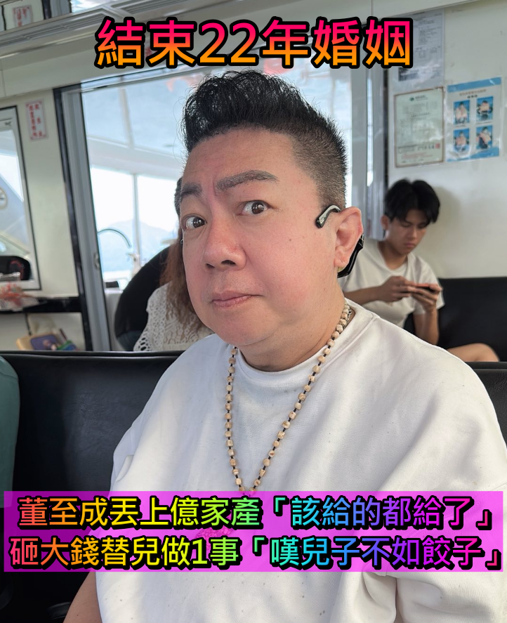 結束22年婚!董至成丟上億家產「為副業最後一博」 無奈嘆「兒子不如餃子」:孝不孝順我不知道 社會觀察家 2026-01-08 檢舉 圖片來源:董至成臉書圖片來源:《自由時報》董至成栽培兒子不遺餘力,不僅花大錢讓孩子參加紐約、洛杉磯等地夏令營,未來也會出國念書,「兒子孝不孝順我不知道,但我知道餃子會很忠於我,兒子不如餃子!」最後,他也講出為人父心情:「我太太跟兒子要吃老本,只要有我在,他們就死不了!」也算是個盡責的爸爸。影片來源:東風衛視參考來源:《ETtoday》 Advertisements 回首頁 2/2 Advertisements 猜你會喜歡 淚送岳父最後一程!蕭敬騰哭喊爸爸「生前每天按摩盡孝」 哽咽:「最期待您罵我一句」 曾橫掃三金!洪榮宏曬「絕美玉女42年前嫩照」 神隱多年「57歲同框氣質女兒」根本姊妹 不孕求子都失敗!郎祖筠遭曝「24年婚曾有過孩子」 她點頭認了「母子如歡喜冤家」:帶我走過低潮 編輯精選推薦 More + 確診甲狀腺癌!44歲男星「術後近況曝光」哽咽:她為我祈禱 「告白演員愛妻」愛不會停止 離婚18年!前夫早知方文琳罹癌「願意付手術費」 「1理由遭拒」爆她術後狀況 瞞病情積極工作!51歲影后「住院照曝光」眼神充滿光 丈夫悲慟「臨終前吃流食」:仍盼奇蹟降臨 當年親吻1歲嬰!42年後「對方竟成巨星」同框劉德華 「超高顏值如兄弟」粉絲喊:真的差19歲? 弟成植物人、姊猝逝!玉女歌手「遭前夫設套」騙走娘家房產 「狠斬16年婚姻」近況曝 晚年兒孫滿堂!73歲影壇大哥「拄拐杖現身」腳步蹣跚 兒子「全程攙扶不喊累」網羨:又帥又孝順 再婚2年了!43歲李燕突喊「當媽媽實在太辛苦」 認「已經有愛的結晶」:最完美的幸福❤️ 離婚11年!洪榮宏愛女結婚「終破冰前妻」 「2爸爸牽她進場」催淚畫面曝 婚變尪落跑!單親媽「獨扛千萬債養孩」到處躲黑道 「一開口驚艷眾人」熬成台灣歌后 慘遭飛車拖行!八點檔男星「臉全磨爛」驚悚畫面曝 目睹女星「崩潰嚇哭」頻發抖 本土劇女星生了!7年前凍卵「終於來到我身邊」 歌手尪嗨喊:生個足球隊 以為只是小感冒!本土女星悲痛證實「他併發肺炎過世」 一度淚灑現場「後悔同意插管」 最新/賈靜雯深夜慟曝「她已離世」 淚PO合照喊:真的好愛你... 大咖男星妹妹出嫁!全身金飾「曾獲近千萬豪宅」嫁妝豐厚 兄妹長超像「一看媽媽懂了」:基因強大 功德圓滿了!台語歌后「悲曝他離世」享壽95歲 淚喊:去當快樂的神仙吧... 空窗多年!68歲陳美鳳突羞認「身邊有個他」 40年前就認識「遭男方母親拆散」 模範孝子!比莉罹癌「兒白天工作、晚上睡醫院」 坦言「一滴淚沒掉」:媽媽可以我也可以 24歲兒失明!于美人爆「他在飯店掃廁所」維生 不盼紅包只求「別再花我的錢」 22歲愛女病逝!資深男星「走不出喪女痛」留白長髮現身 掛骨灰項鍊「代女做1事」惹淚 李英愛輸了!73歲富商尪「超凍齡像40壯年」站一起超登對 「不時甜蜜咬耳朵」網羨慕 慶祝17歲愛女畢業!53歲大咖「兒女皆讀名校」年花千萬 驕傲「她獲三大獎」:又美又自信 85歲失智父身亡!林葉亭突宣布「皈依佛門」 遇大師「開示一番話」忍不住淚崩 旅美多年!資深女星「堅持落葉歸根」回國5天安詳離世 死前「砸600萬做1事」眾人淚目 台灣大咖病逝「享壽83歲」!周遊告別式痛哭「認婚內出軌」:兒子很恨我... 趕在40歲前閃婚!八點檔女星「宣布嫁給他」 尪驚人身分曝「媒人是柯叔元」