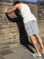 原來,是近期很火的「推牆體操」,是從日本醫學界漂洋過海而來的。即利用背部穴位和牆之間的衝擊力,來調節相應的身體機能。不過,要注意方法,否則就可能會撞得「頭昏眼花」喲。