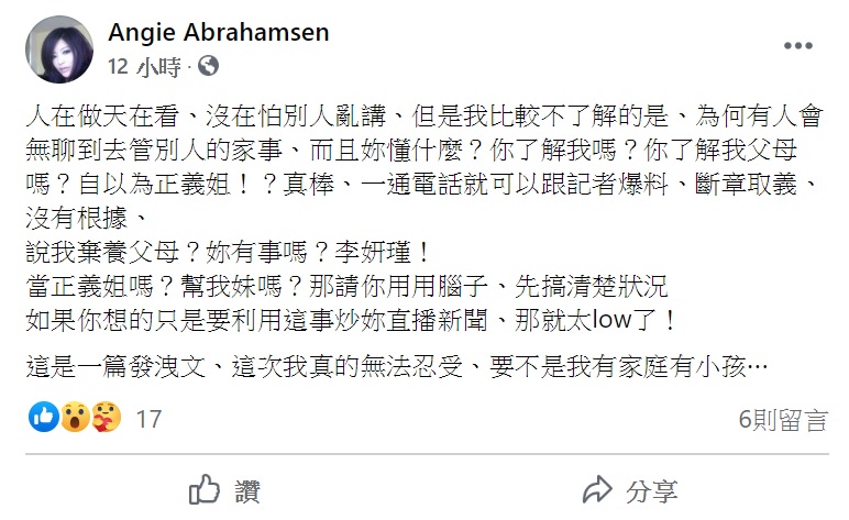 被指棄養父母!李愛綺臉書發飆「自以為正義嗎」氣喊要告 李妍瑾「拿出對話紀錄」:根本站不住腳