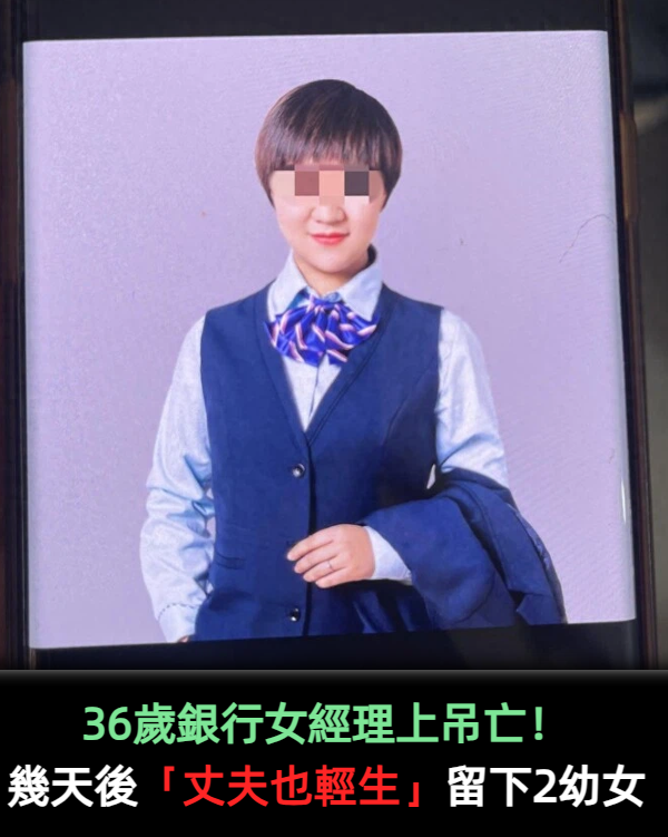 36歲銀行女經理上吊亡!幾天後「丈夫也輕生」留下2幼女