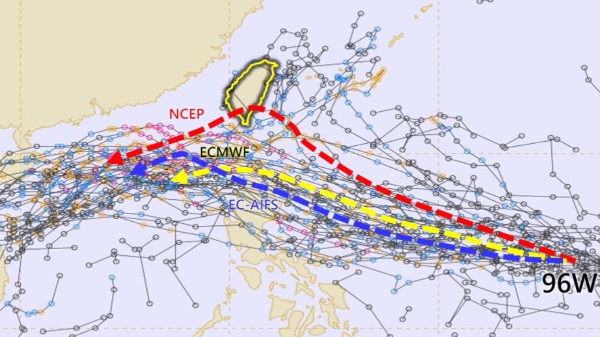 氣象專家分析指出,低壓系統在週日之前朝菲東移動的路徑算是穩定,但後續走向卻呈現「天女散花」狀態,各國預報模式出現明顯分歧。其中,美國模式預測颱風可能直接影響台灣,歐洲模式則預估路徑偏向菲律賓北部。