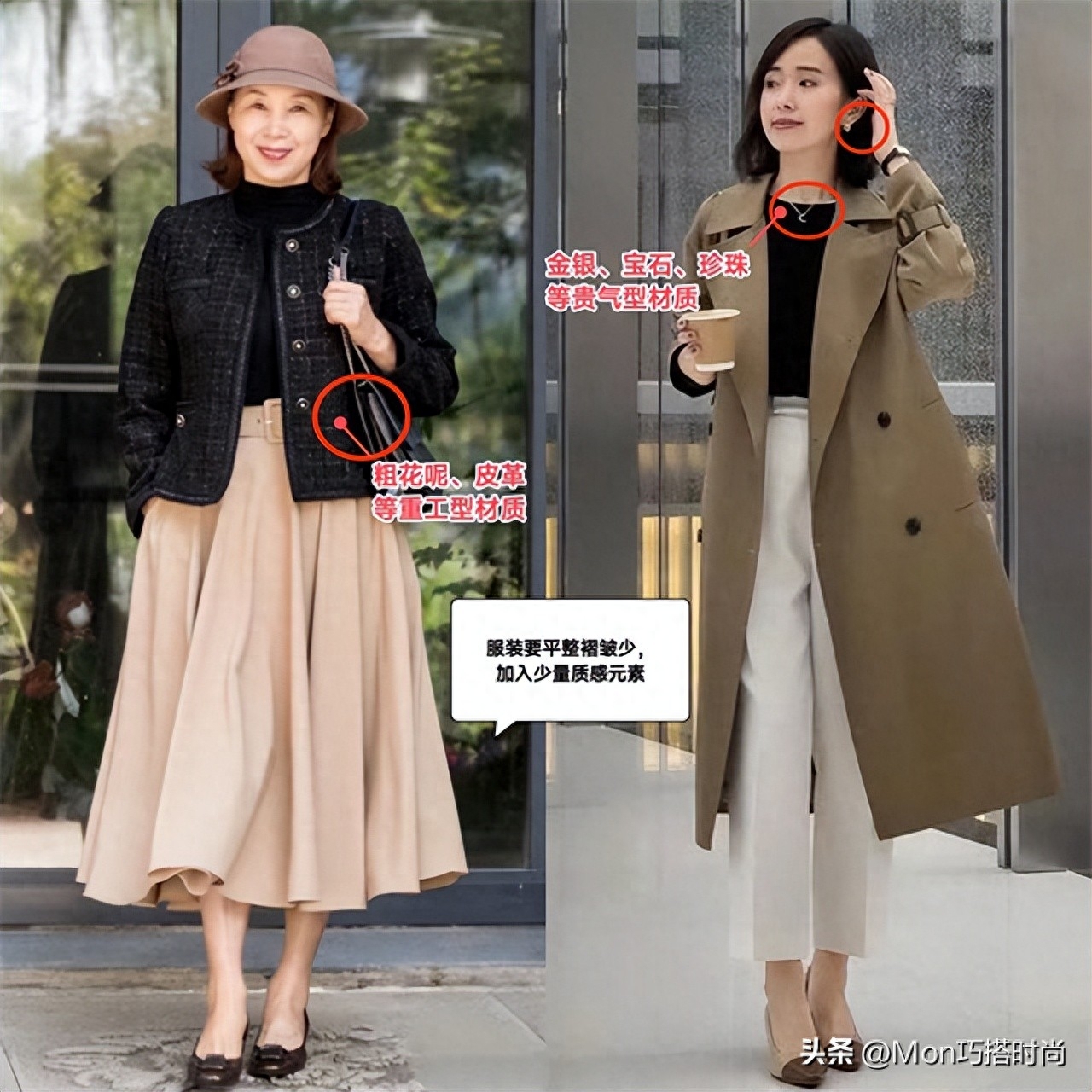 技巧一、大齡穿衣無需太花哨,基礎色完全夠用