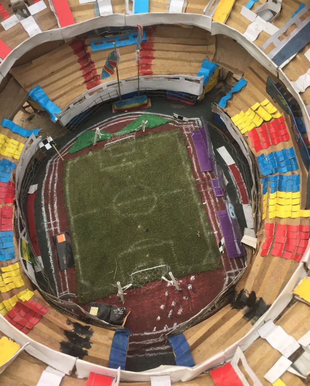 夢想成為建築師!11歲弟弟「紙板做出世界級足球場」超猛 近看裡面「草皮球場上升旗台」精美神還原