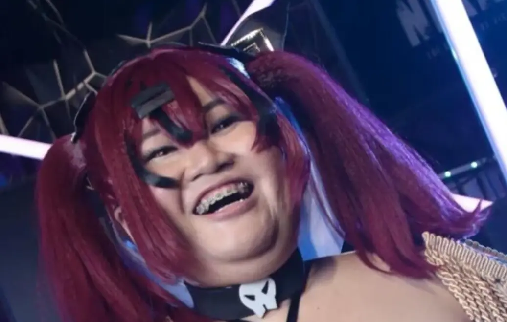 根據《TVBS新聞網》、《NOWnews今日新聞》報導,從曝光的照片中能夠看到,這位女Coser配戴著紅色雙馬尾假髮,手持道具對著鏡頭擺出各種姿勢。然而在缺乏濾鏡與修圖技術的輔助下,她的臉部輪廓顯得較為圓潤豐腴,下顎與頸部的線條不夠分明,甚至出現了明顯的雙下巴,微笑時還能看見矯正牙齒的牙套,整體身型也顯得較為結實。
