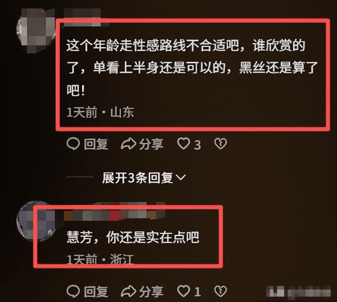 有的網友直接批評張凱麗,這麼大年紀穿的一點也不得體,也不害羞。