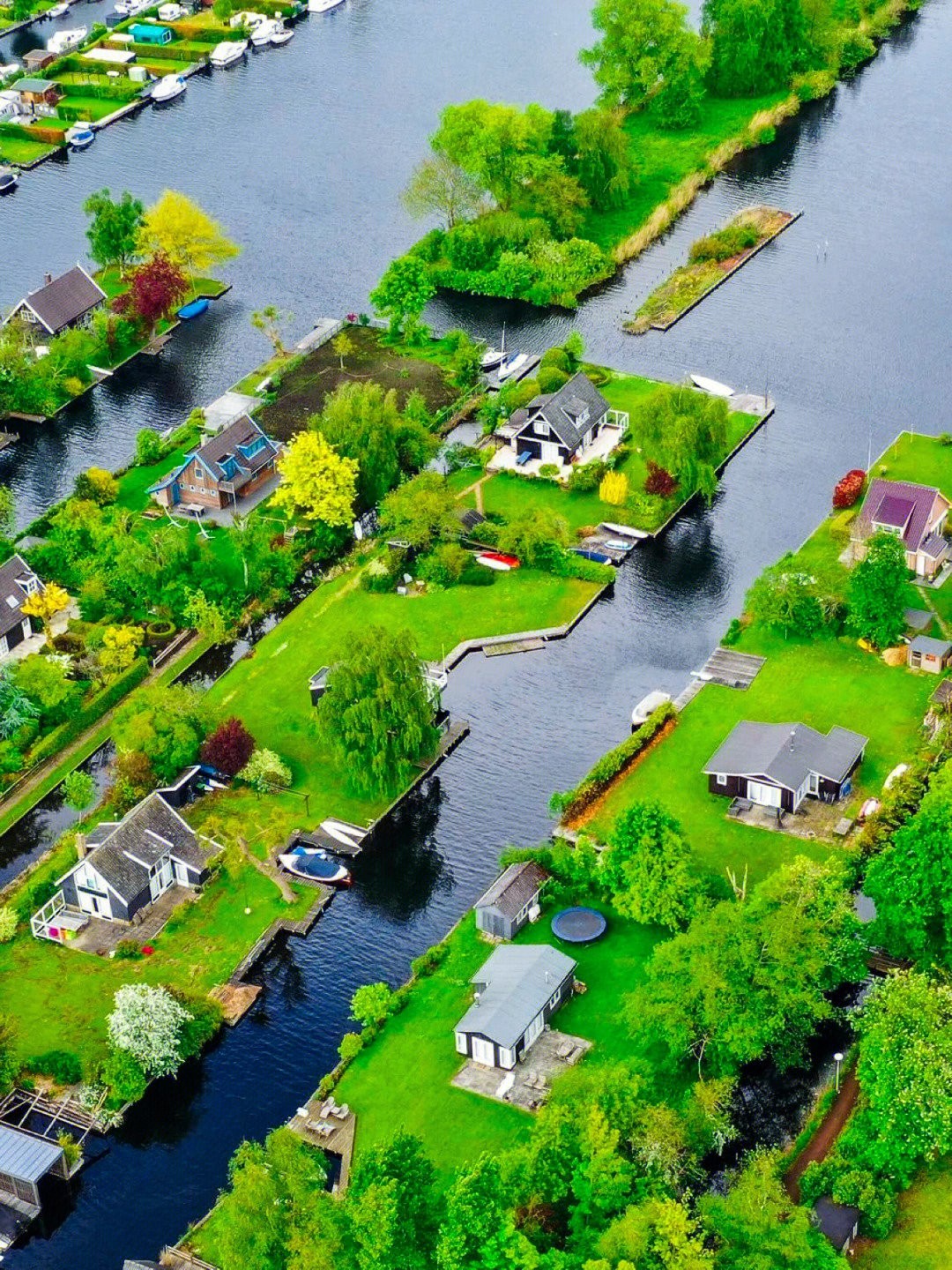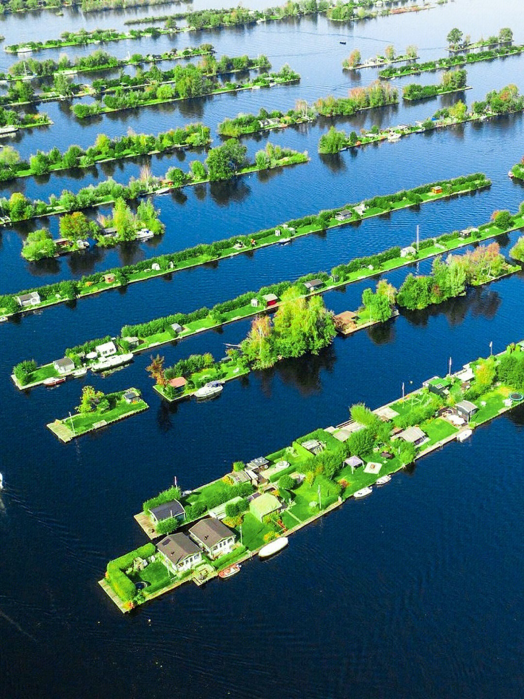 位於荷蘭的溫克文小鎮,最有名的就是溫克文湖,此片湖水是荷蘭最乾淨的水域之一,湖水被分割成一條條狹長的島嶼,上面漂浮著很多的別墅、小屋和植物,從空拍視角看過去,就像是一列列綠色火車,景色優美又獨特。