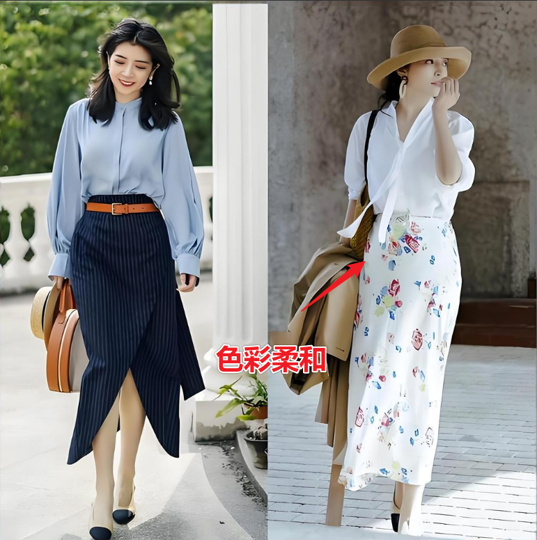 純色單品可以起到襯托和突出花色服裝的作用,使整體造型更加協調和有層次感。