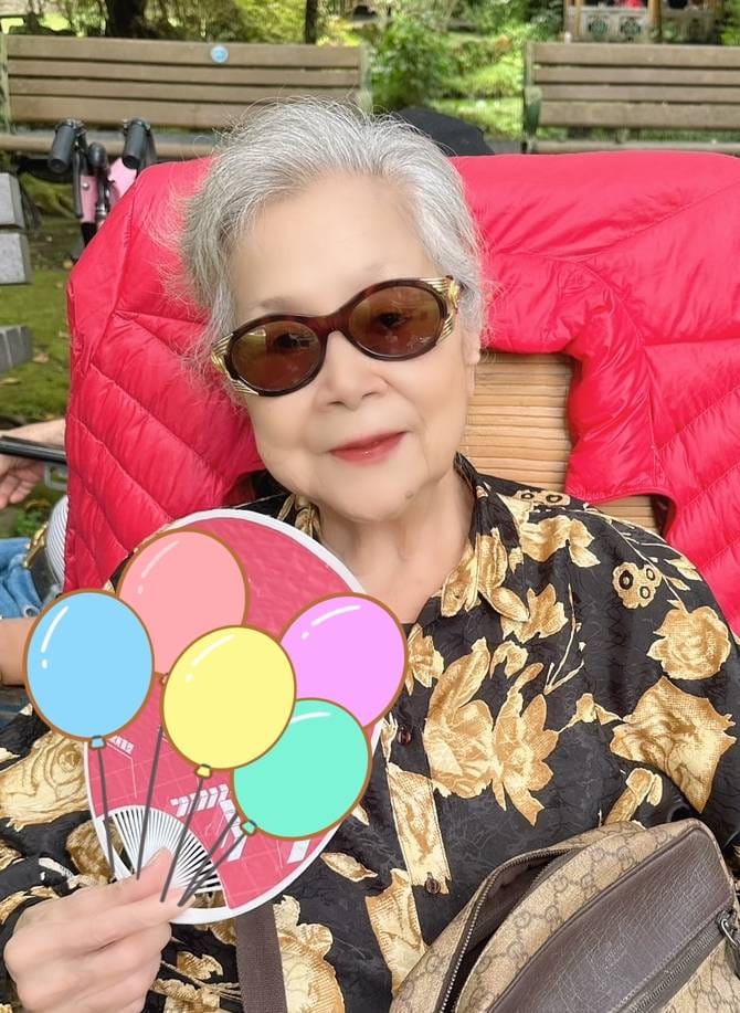 據《中時電子報》報導,素珠阿姨上次公開露面,已是6年前出席資深製作人周遊世紀婚禮,當時她拄著拐杖、一跛一跛行走,身體狀況似乎抱恙,讓許多粉絲超擔心!近日,她身穿金色花卉上衣、戴著新潮墨鏡,手拿一把扇子,露出慈祥笑容,身後則是公園長椅和綠地,看起來非常愜意,她寫道:「老娘來跟大家問候,大家好嗎?哈哈!」