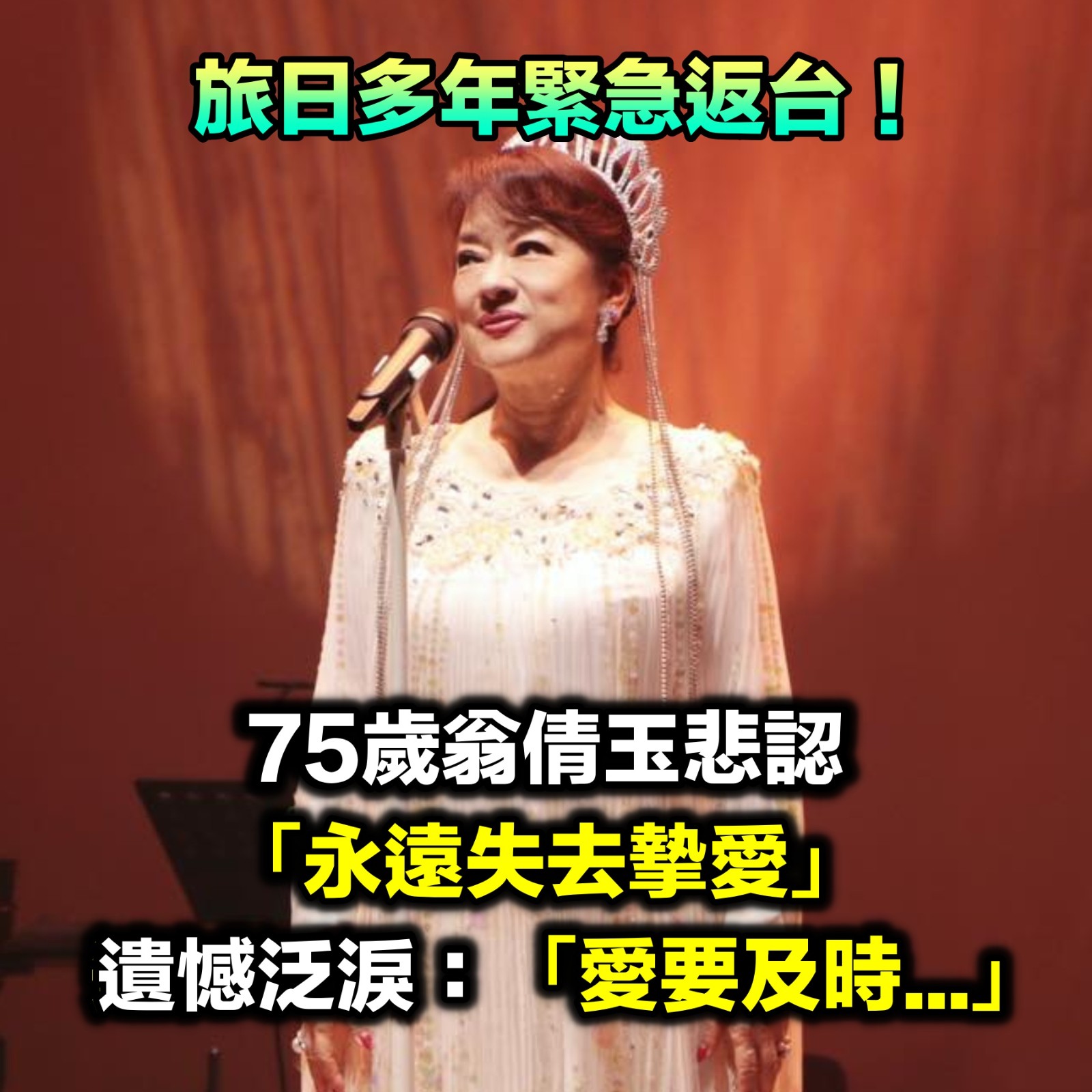 旅日多年急返台!翁倩玉悲認「永遠失去他」:愛要及時 「為保97歲母命」發願40年不吃牛 自然捲 2025-11-13 檢舉 圖片來源:自由為了演唱會、她量身打造一曲新歌,獻給媽媽和歌迷。首次錄音時,翁倩玉為了完美呈現每個字的咬字,整整花了8小時反覆練習,甚至急得直跺腳,所幸第二次錄音順利完成,她也決定在農曆春節閉關練習、投入緊密的練團行程,並向粉絲們熱情邀約粉:「讓我們在演唱會上相見,一起綻放最燦爛的微笑~」圖片來源:翁倩玉臉書參考來源:自由娛樂 Advertisements 回首頁 2/2 Advertisements 猜你會喜歡 阿翔突PO「醫院自拍憔悴照」嚇壞粉絲!認了「摯愛檢查出腦瘤」:一收工就趕去醫院陪床 「媽在我懷裡不動了」台灣第一美女追憶母 盡孝到最後一刻「走後堅持一舉動」看哭許多人 53歲主持大哥驚傳「下班回家後身亡」!電視台證實死訊:「惡化太快了....」 編輯精選推薦 More + 晚年兒孫滿堂!73歲影壇大哥「拄拐杖現身」腳步蹣跚 兒子「全程攙扶不喊累」網羨:又帥又孝順 慶祝17歲愛女畢業!53歲大咖「兒女皆讀名校」年花千萬 驕傲「她獲三大獎」:又美又自信 65歲男星獨居暴斃!大咖女星放下恩怨「送前夫最後一程」 昔遭動手6年嘆「死者為大」 大咖男星妹妹出嫁!全身金飾「曾獲近千萬豪宅」嫁妝豐厚 兄妹長超像「一看媽媽懂了」:基因強大 功德圓滿了!台語歌后「悲曝他離世」享壽95歲 淚喊:去當快樂的神仙吧... 婚變尪落跑!單親媽「獨扛千萬債養孩」到處躲黑道 「一開口驚艷眾人」熬成台灣歌后 85歲失智父身亡!林葉亭突宣布「皈依佛門」 遇大師「開示一番話」忍不住淚崩 模範孝子!比莉罹癌「兒白天工作、晚上睡醫院」 坦言「一滴淚沒掉」:媽媽可以我也可以 慘遭飛車拖行!八點檔男星「臉全磨爛」驚悚畫面曝 目睹女星「崩潰嚇哭」頻發抖 這是變種肥馬吧!神爸用PS「把寶貝塗鴉變實體」張張爆笑 童趣插畫「捲毛狗變飛天鳥」名畫秒歪樓 瞞病情積極工作!51歲影后「住院照曝光」眼神充滿光 丈夫悲慟「臨終前吃流食」:仍盼奇蹟降臨 台灣大咖病逝「享壽83歲」!周遊告別式痛哭「認婚內出軌」:兒子很恨我... 最新/賈靜雯深夜慟曝「她已離世」 淚PO合照喊:真的好愛你... 確診甲狀腺癌!44歲男星「術後近況曝光」哽咽:她為我祈禱 「告白演員愛妻」愛不會停止 24歲兒失明!于美人爆「他在飯店掃廁所」維生 不盼紅包只求「別再花我的錢」 吳亦凡驚傳身亡「獄友證實死訊」!曝光殘忍內幕:「滿足不了大哥」 趕在40歲前閃婚!八點檔女星「宣布嫁給他」 尪驚人身分曝「媒人是柯叔元」 22歲愛女病逝!資深男星「走不出喪女痛」留白長髮現身 掛骨灰項鍊「代女做1事」惹淚 再婚2年了!43歲李燕突喊「當媽媽實在太辛苦」 認「已經有愛的結晶」:最完美的幸福❤️ 台語歌后慟別摯愛!告別式上認「早隱瞞病情」 道歉哭喊:原諒我簽放棄急救 當年親吻1歲嬰!42年後「對方竟成巨星」同框劉德華 「超高顏值如兄弟」粉絲喊:真的差19歲? 空窗多年!68歲陳美鳳突羞認「身邊有個他」 40年前就認識「遭男方母親拆散」 離婚11年!洪榮宏愛女結婚「終破冰前妻」 「2爸爸牽她進場」催淚畫面曝 快養不起小孩!本土男星「開計程車、斜槓房仲」 突宣布「離開台灣」:演藝圈沒工作 曾比江蕙紅!台語歌后「爆未婚生子」遭指指點點 「2次手術害癱瘓」72歲近況曝