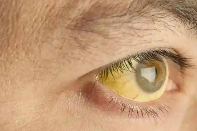 只有對比另一隻眼或拿白紙才能看出來。這其實是血液中間接膽紅素升高的結果。當肝細胞處理膽紅素能力下降,未結合的膽紅素在血中累積,就開始沉積在組織中。鞏膜因為富含彈性纖維、代謝活躍,所以最先「上色」。