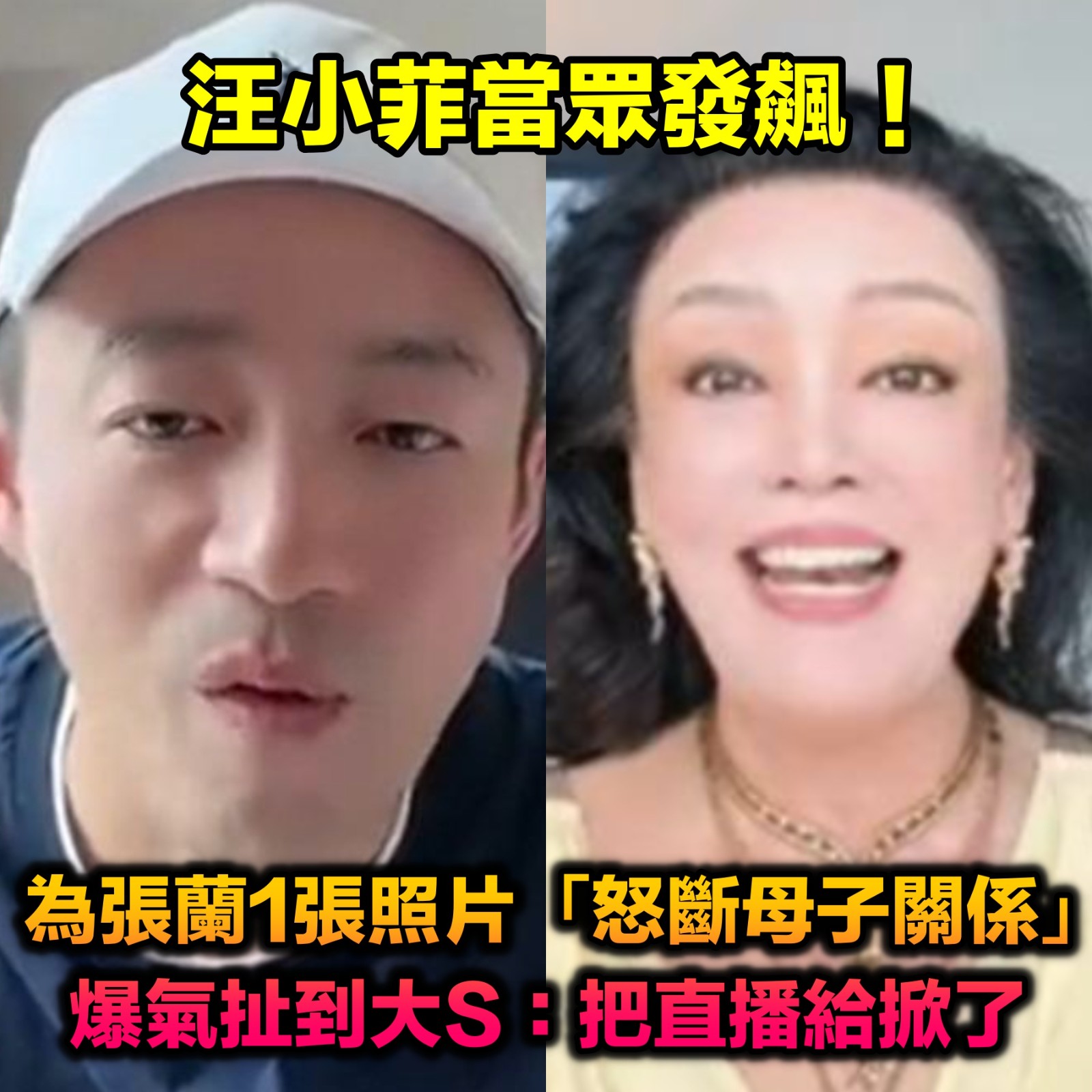 汪小菲當眾發飆!為張蘭1張照片「怒斷母子關係」 爆氣扯到大S:「把直播給掀了」 力量人 2026-03-13 檢舉 但說到最後,汪小菲也承認自己拿張蘭沒轍,無奈地說,「我要是真有本事,也不會落到今天這個地步,我已經被迫退網了」,言下之意是他根本也無力改變母親的行為模式。圖片來源:微博有這樣的媽媽也是辛苦,還是希望汪小菲早日脫離張蘭掌控吧~資料來源:TVBS新聞網 Advertisements 回首頁 2/2 Advertisements 編輯精選推薦 More + 44歲許維恩罹乳癌!醫示警「3日常用品」易致癌:別碰才能保命 空窗多年!68歲陳美鳳突羞認「身邊有個他」 40年前就認識「遭男方母親拆散」 離婚18年!前夫早知方文琳罹癌「願意付手術費」 「1理由遭拒」爆她術後狀況 李英愛輸了!73歲富商尪「超凍齡像40壯年」站一起超登對 「不時甜蜜咬耳朵」網羨慕 最新/賈靜雯深夜慟曝「她已離世」 淚PO合照喊:真的好愛你... 台語歌后慟別摯愛!告別式上認「早隱瞞病情」 道歉哭喊:原諒我簽放棄急救 本土劇女星生了!7年前凍卵「終於來到我身邊」 歌手尪嗨喊:生個足球隊 離婚11年!洪榮宏愛女結婚「終破冰前妻」 「2爸爸牽她進場」催淚畫面曝 交往7個月就閃婚!小17歲妻遭質疑「嫁沈玉琳是為了錢」 婚後負債3千萬「芽芽一句話」網看哭 22歲愛女病逝!資深男星「走不出喪女痛」留白長髮現身 掛骨灰項鍊「代女做1事」惹淚 旅美多年!資深女星「堅持落葉歸根」回國5天安詳離世 死前「砸600萬做1事」眾人淚目 打破年齡偏見!62歲影后「紅毯穿開深V粉裙」成全場最美 一轉身「超辣腰背線條」:比26歲還美 慶祝17歲愛女畢業!53歲大咖「兒女皆讀名校」年花千萬 驕傲「她獲三大獎」:又美又自信 24歲兒失明!于美人爆「他在飯店掃廁所」維生 不盼紅包只求「別再花我的錢」 65歲男星獨居暴斃!大咖女星放下恩怨「送前夫最後一程」 昔遭動手6年嘆「死者為大」 功德圓滿了!台語歌后「悲曝他離世」享壽95歲 淚喊:去當快樂的神仙吧... 當年親吻1歲嬰!42年後「對方竟成巨星」同框劉德華 「超高顏值如兄弟」粉絲喊:真的差19歲? 大咖男星妹妹出嫁!全身金飾「曾獲近千萬豪宅」嫁妝豐厚 兄妹長超像「一看媽媽懂了」:基因強大 以為只是小感冒!本土女星悲痛證實「他併發肺炎過世」 一度淚灑現場「後悔同意插管」 快養不起小孩!本土男星「開計程車、斜槓房仲」 突宣布「離開台灣」:演藝圈沒工作 登國際時裝周美翻!49歲舒淇「剪掉多年大長髮」 短髮封神「一轉身側面全空」驚艷米蘭 趕在40歲前閃婚!八點檔女星「宣布嫁給他」 尪驚人身分曝「媒人是柯叔元」 滿街都在穿!醫點名「這款鞋」少穿為妙:恐讓脊椎變形 教你「1招看腿型」秒挑到好鞋 晚年隱居台東!68歲名主持失蹤「車內身亡」 伴侶悲曝「死前做1事」:還掛念著我 最新/3度中風送醫!資深男星爆離婚「斷50年髮妻」 「砸1億淨身出戶」家族爆紛爭