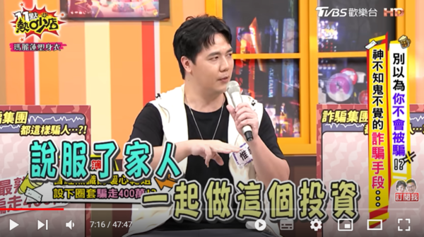 40歲台灣男星林惟毅,出道後便擔任知名行腳節目《冒險王》主持,並在之後參與《愛玩客》節目,並以樸實形象深植人心,收穫不少婆媽粉絲。不過,他上節目《11點熱吵店》坦言,曾被一位同在演藝圈的「乾姐」設局,被騙走身家400萬元,甚至連家人也一併被拖下水,戶頭更只剩下3元,相當淒慘。