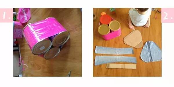 這種製作方法網上很常見,有些心靈手巧的媽媽就選擇用這些空奶粉罐給寶寶做個小板凳。先把四五個奶粉罐粘在一起,如果你覺得還是不牢固的話,可以選擇用牛皮紙在外圍包一層。